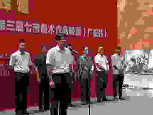 广安市委宣传部常务副部长黎均平在仪式上发表致辞,下一站主办方遂宁市文联党组书记、主席冯俊发言,广安市委常委、副市长赵博宣布开展。出席开展仪式的领导还有广安市人大常委会副主任席世洪,市文联直属部门负责同志,七市文联和美协的嘉宾等,市美协会员代表100余人参加了本次开展仪式。仪式由广安市文联专职副主席兰勇主持。