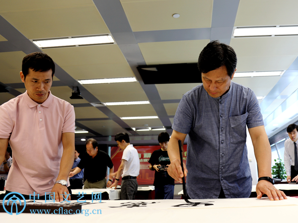 活动现场,中国书法家与书法爱好者交流了创作心得,并进行了现场作品点评。