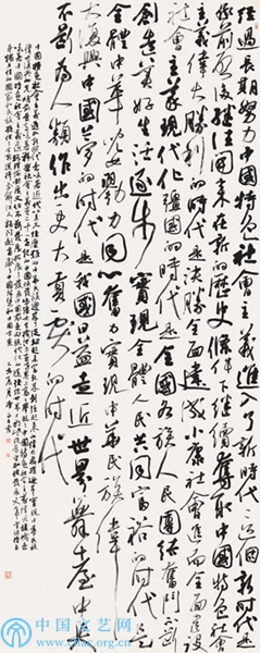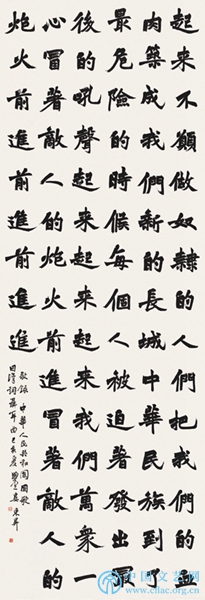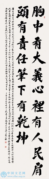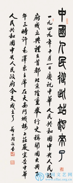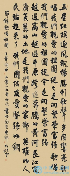 由中国文联、中国书协共同主办的“盛世中国——庆祝中华人民共和国成立70周年书法大展”9月25日至10月7日在中国人民革命军事博物馆举办。展览精心选取在新中国70年奋斗史上有重大影响的历史节点,包括工业、农业、科技、国防、航天、文化、体育等各领域的突出成就,精心选取当时报刊发表的具有历史纪时性的文献,邀请当代近百位书法名家,精心创作了近百件风格多样、大气磅礴的书法巨作,力求用书法的独特语言,深刻呈现出时代品格,传递出时代精神,表达新时代书法家对党的忠诚,对英雄的敬仰和对祖国、人民深沉的热爱。